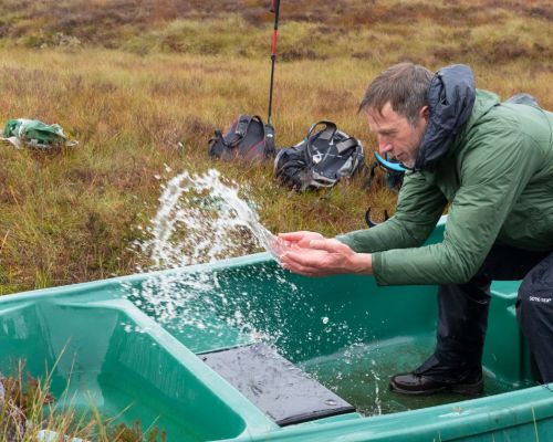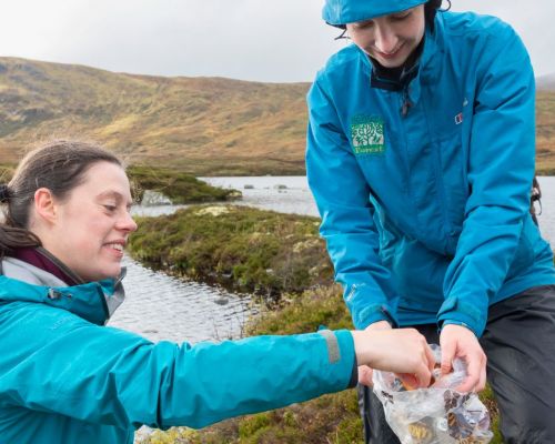 Once ashore, the team splits up to scour the island for botanical treasures. It is immediately clear from their reactions that these unremarkable-looking islands are full of floral interest. Despite being separated by less than 50m of peaty water, they are almost never visited by the resident red deer. As a result, the vegetation on these islands exists in an entirely different grazing regime to the surrounding moorland. From the abundant lichens, to the mountain birches and willow scrub that survives here, they represent an ecological counterfactual: a snapshot of what Scotland’s uplands could look like.
