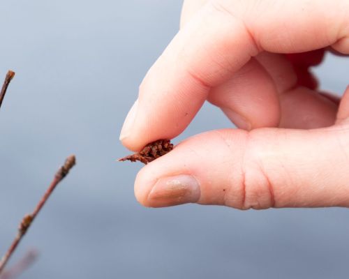 That ambition is close to Nicky’s heart, both personally and professionally. Working as a woodland adviser for the Borders Forest Trust, she hopes to return mountain birch to the high ground of the Moffat Hills, where it remains a missing piece of the ecological puzzle. As Nicky harvests catkins, she explains to me that the seed will be grown on at Proven Plants, a new nursery specialising in native trees, before the Trust plants the saplings out in the Borders.