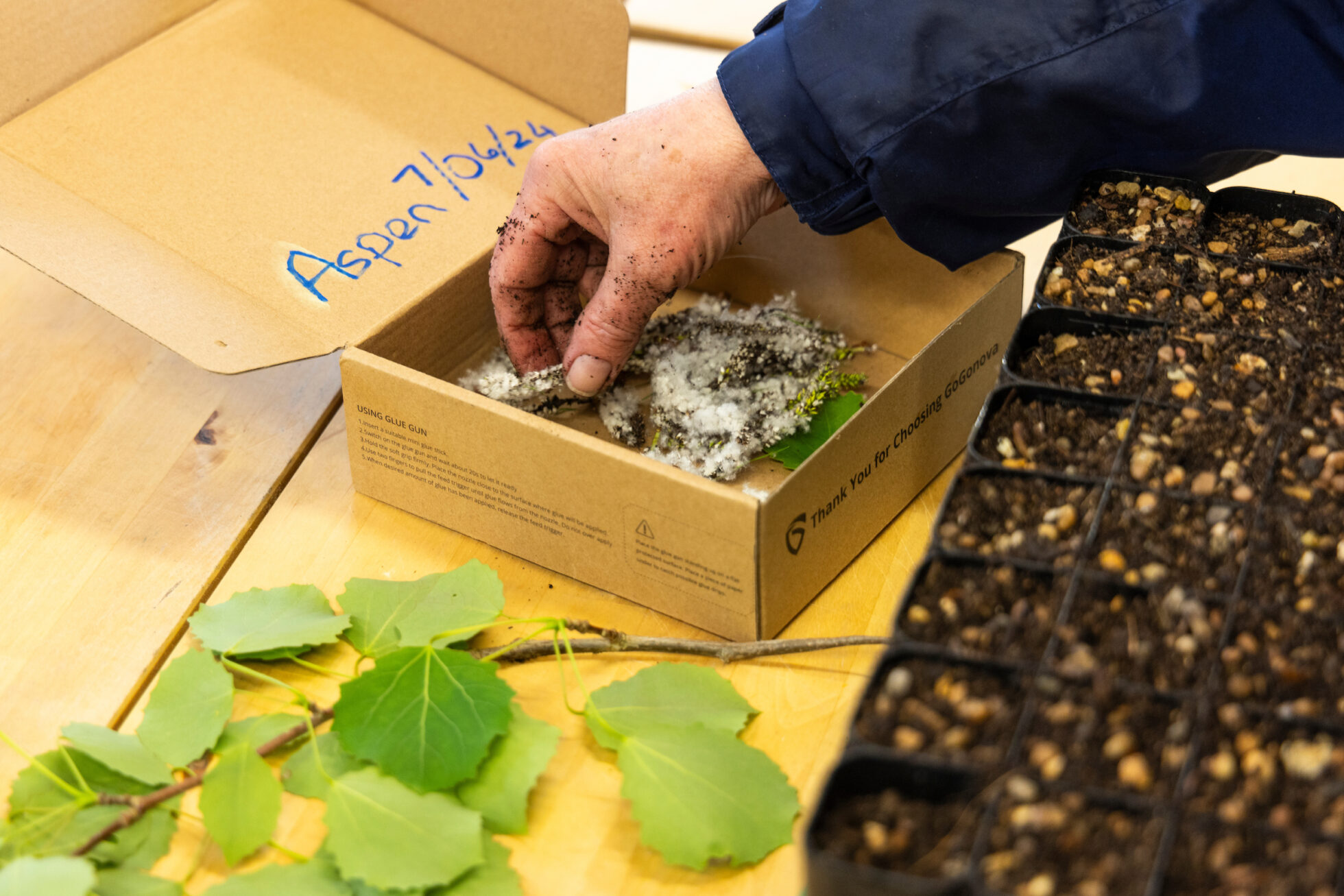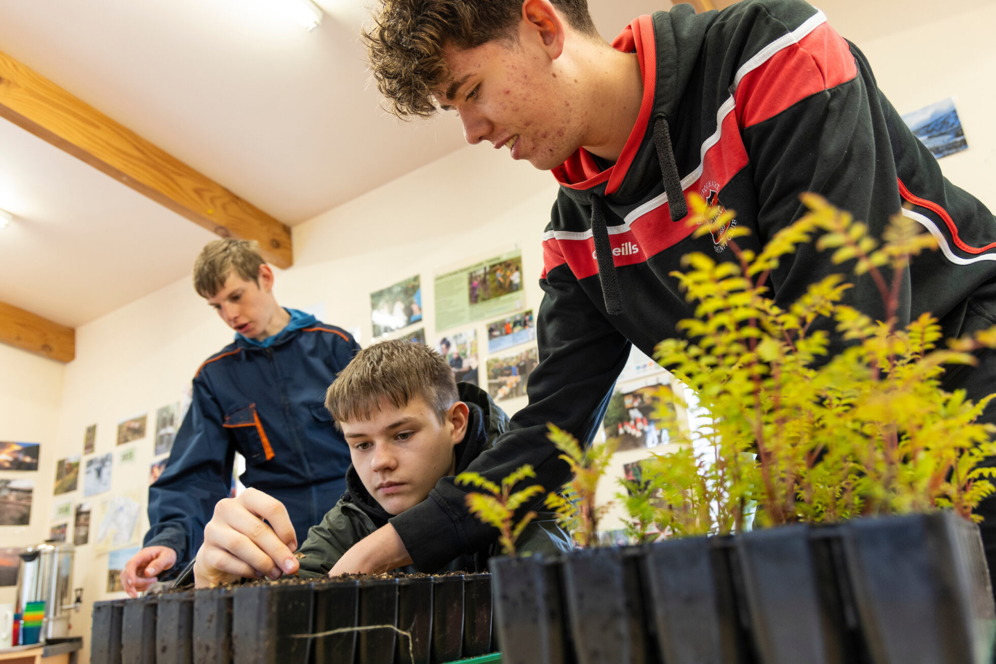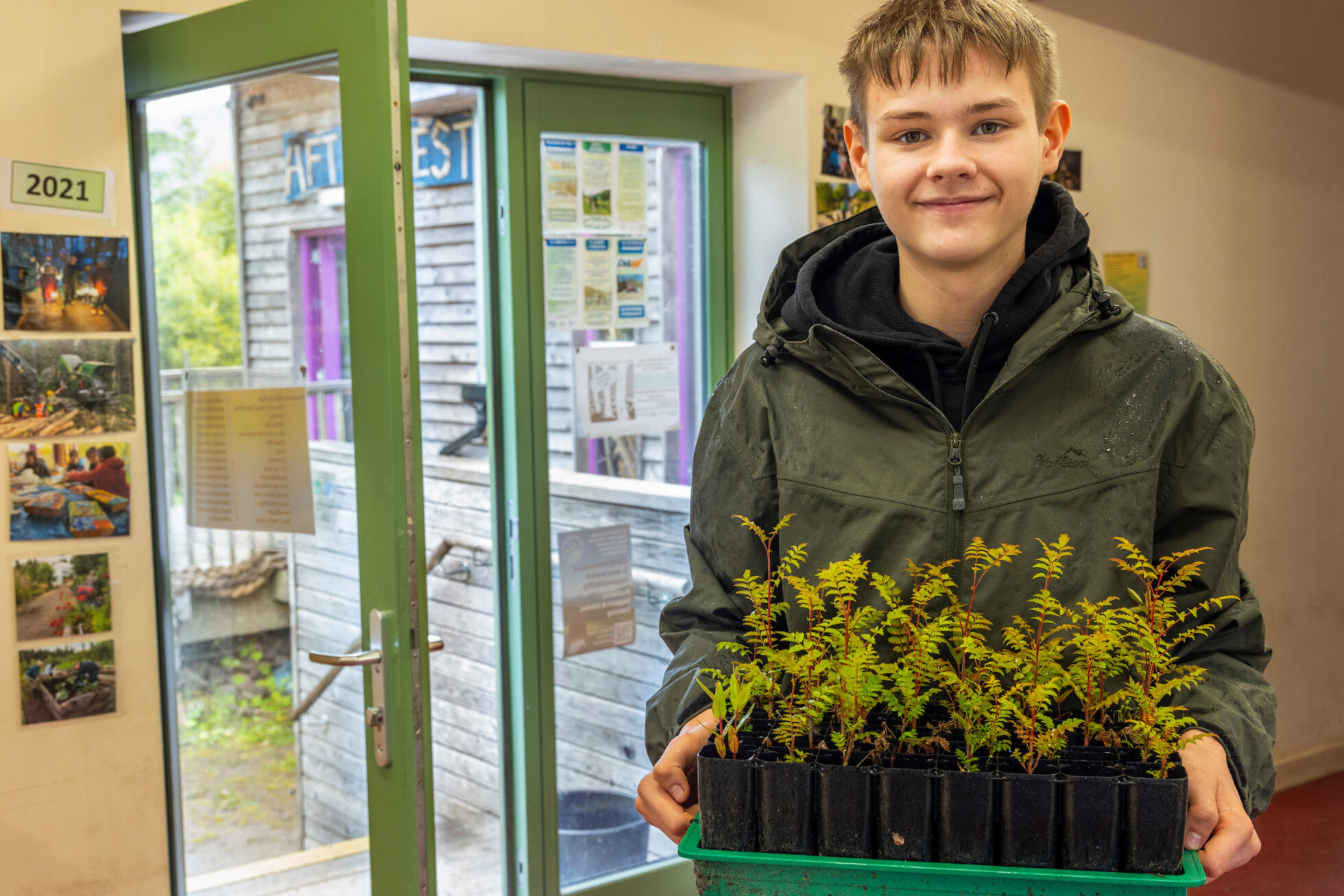 Rory and Duncan are finishing their Level 4 Forest and Outdoor Learning Award – just one of a broad range of schemes for young people. The lads are planting a mix of native trees, with the Trust keen to get volunteers involved in all stages of woodland restoration, from collecting seeds, through to planting out saplings.