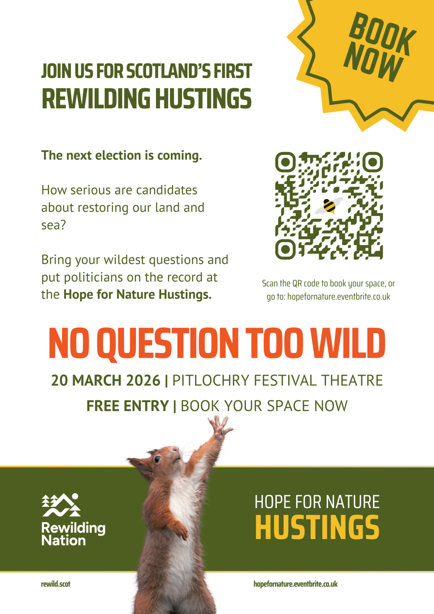 Join us on World Rewilding Day for a special, non-partisan hustings bringing together representatives from all major Scottish political parties. This is your chance to hear directly how they plan to restore nature, tackle the nature and climate crises, and support communities across Scotland.